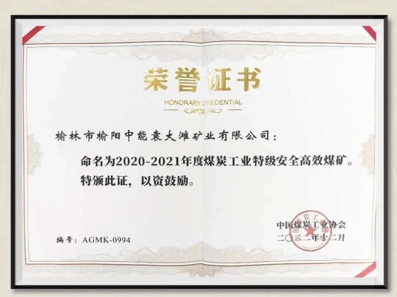 中能袁大灘煤礦榮獲“2020-2021年度中國(guó)煤炭工業(yè)特級(jí)安全高效礦井”稱(chēng)號(hào)