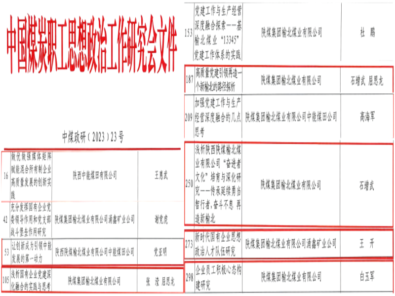 公司多篇思想政治工作研究成果獲中煤政研會表彰
