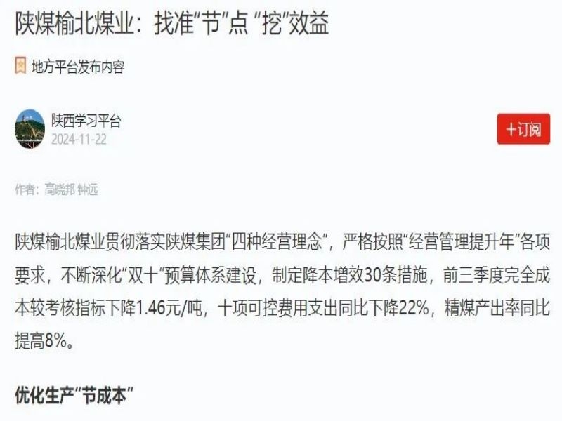 學(xué)習(xí)強(qiáng)國(guó)丨陜煤榆北煤業(yè):找準(zhǔn)“節(jié)”點(diǎn) “挖”效益