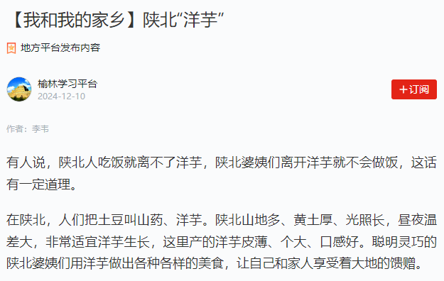 學(xué)習(xí)強(qiáng)國(guó)平臺(tái)丨陜北“洋芋”