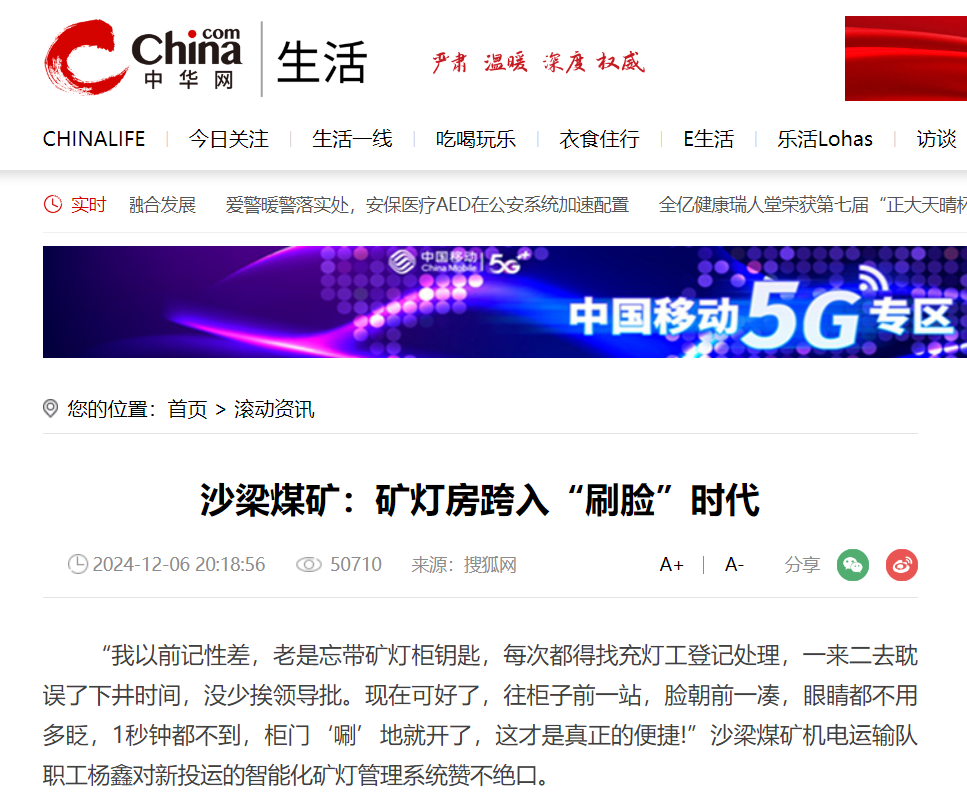 中華網(wǎng)丨沙梁煤礦:礦燈房跨入“刷臉”時(shí)代
