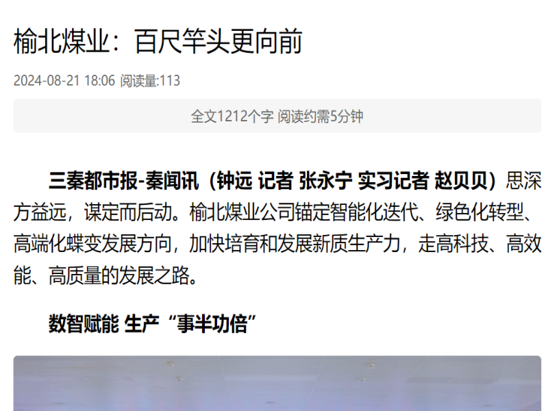 三秦都市報(bào)丨榆北煤業(yè):百尺竿頭更向前