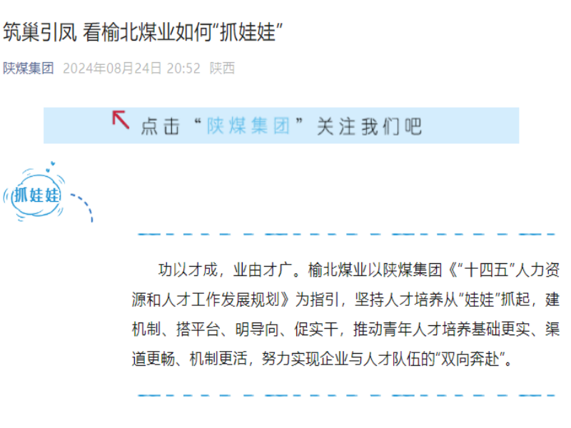 陜煤集團(tuán)微信丨筑巢引鳳 看榆北煤業(yè)如何“抓娃娃”