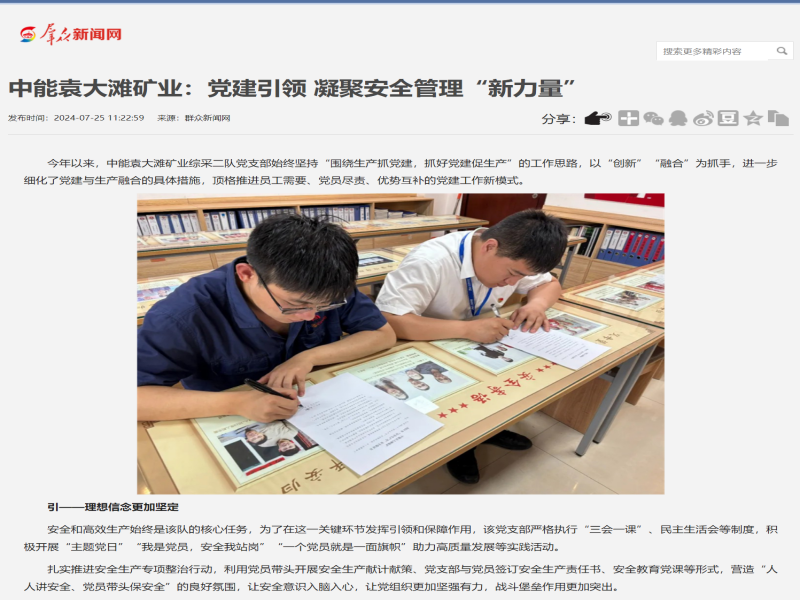 群眾新聞網丨中能袁大灘礦業: 黨建引領 凝聚安全管理“新力量”
