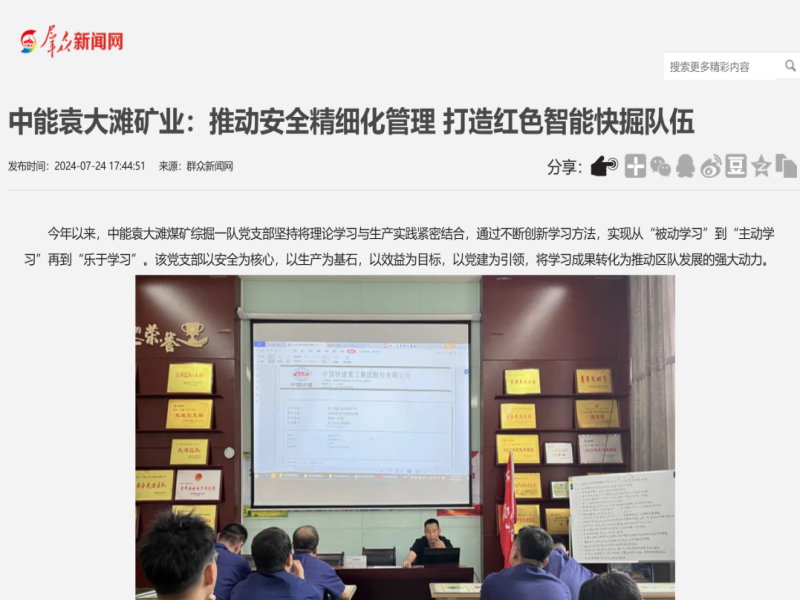 群眾新聞網丨中能袁大灘礦業:推動安全精細化管理 打造紅色智能快掘隊伍