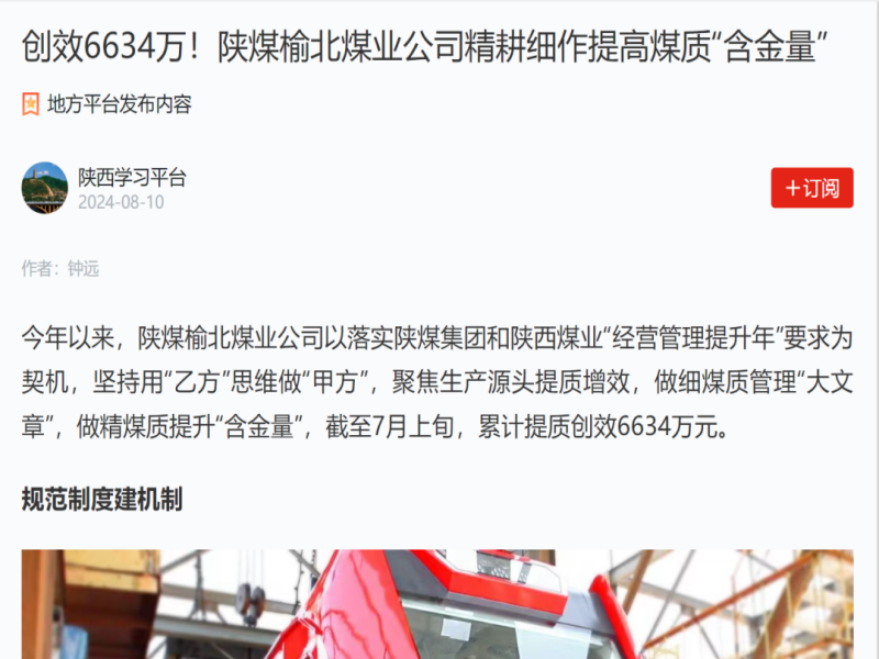 學習強國丨 創效6634萬!陜煤榆北煤業公司 精耕細作提高煤質“含金量”