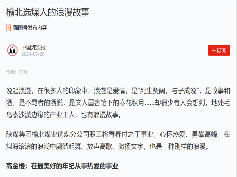 學習強國丨 榆北選煤人的浪漫故事