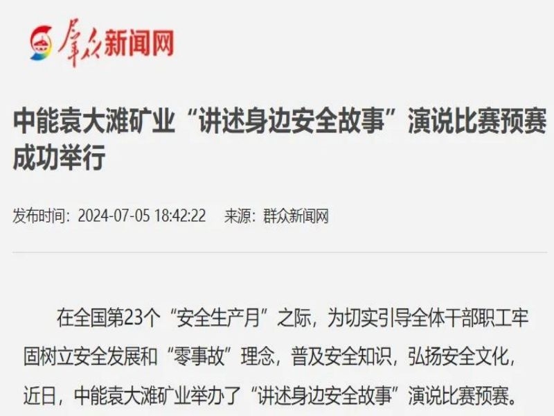 群眾新聞網丨中能袁大灘礦業“講述身邊安全故事”演說比賽預賽成功舉行
