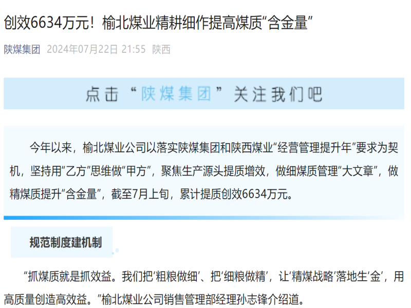 陜煤集團微信丨創效6634萬元!榆北煤業精耕細作提高煤質“含金量”