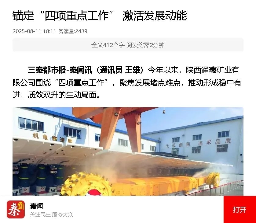 奮進陜煤丨榆北涌鑫公司: 質效雙優 書寫高質量發展答卷