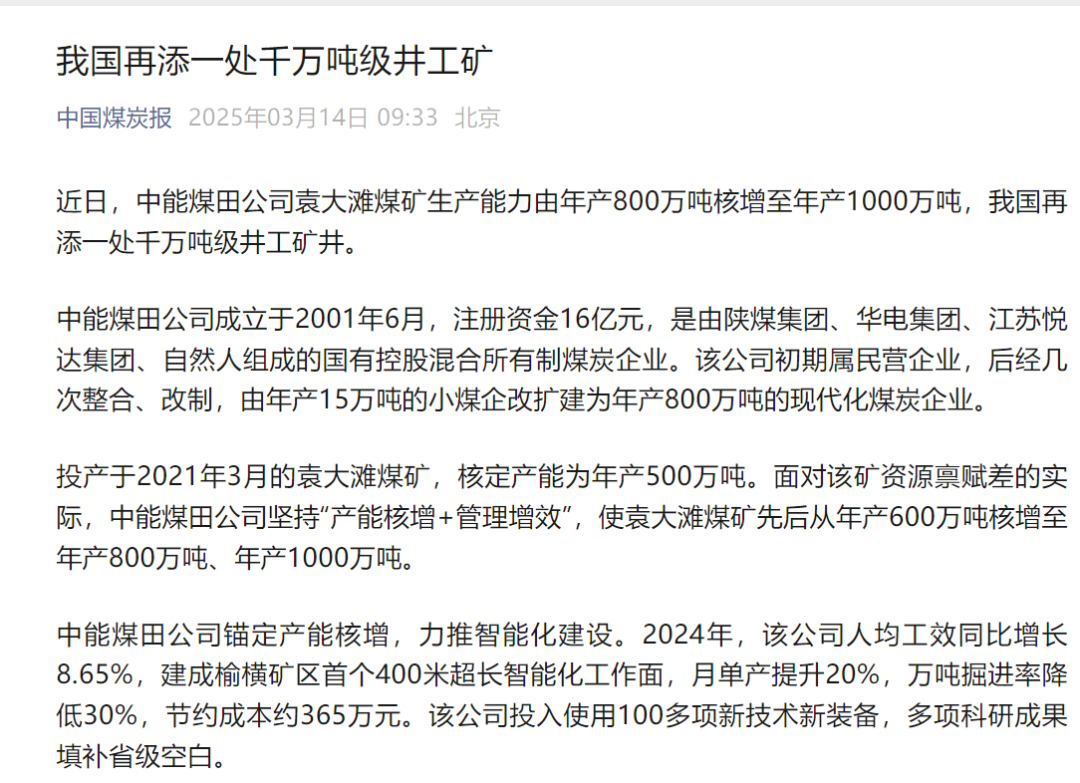 中國煤碳報丨中能袁大灘礦業(yè):我國再添一處千萬噸級井工礦