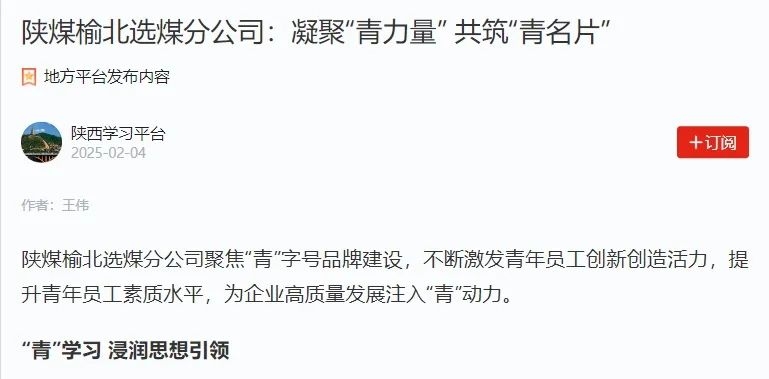 學(xué)習(xí)強(qiáng)國平臺丨陜煤榆北選煤分公司:凝聚“青力量” 共筑“青名片”