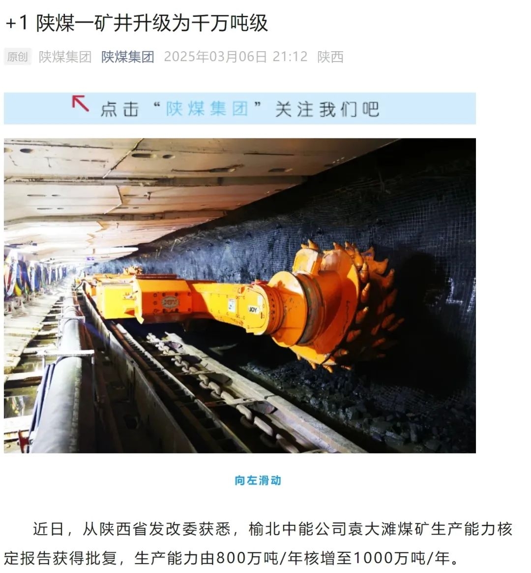 陜煤集團(tuán)微信丨+1 陜煤一礦井升級為千萬噸級