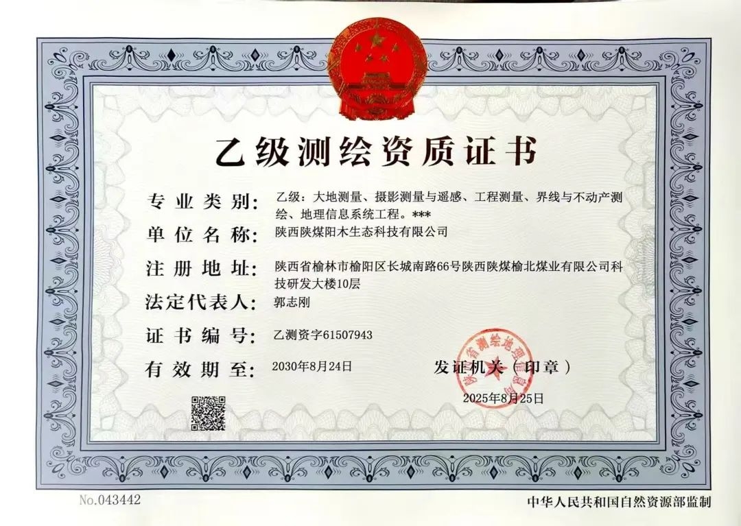 近日,陜西省測繪信息局正式批復,陽木生態公司成功取得乙級測繪資質...