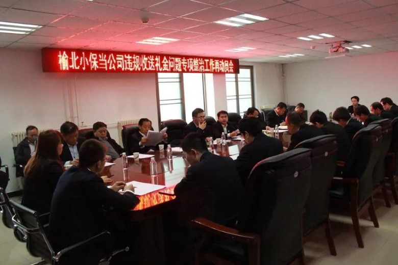 212019-01小保當公司召開違規收送禮金問題專項整治工作再動員再部署會議1月18日,小保當公司召開違規收送禮金問題專項整治工作再動員再部署會議。該公司領導班子成員、各部室區隊負責人及主管人財物相關部室人員40余人參加了會議。 會上,該公司黨總支書記、總經理楊征帶領大家學習了陜煤集團、公司“違規收送禮金”專項整治工作再動員會議精神。黨總支副書記侯買恒傳達了公司黨委書記、董事長肖緒才在專項整治工作再動員會議上的講話精神。 為深入推進專項整治工作,楊征要求,一是各部室、各區隊要進一步提高思想認識,加大宣傳教育力度,明確分工,落實責任,確保在...
