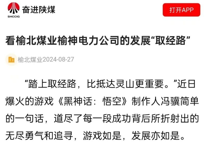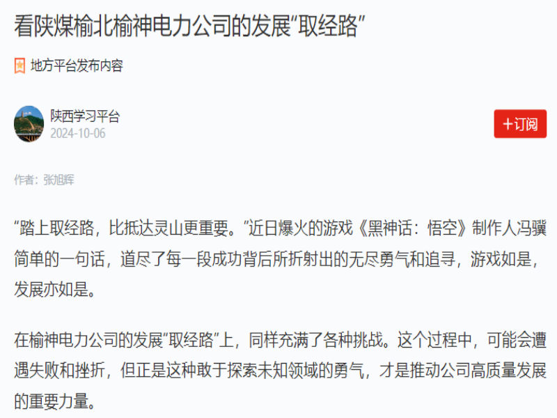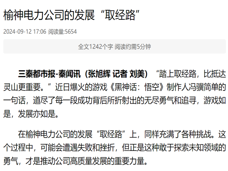 “踏上取經路,比抵達靈山更重要。”近日爆火的游戲《黑神話:悟空》制作人馮驥簡單的一句話,道盡了每一段成功背后所折射出的無盡勇氣和追尋,游戲如是,發展亦如是。在榆神電力公司的發展“取經路”上,同樣充滿了各種挑戰。這個過程中,可能會遭遇失敗和挫折,但正是這種敢于...