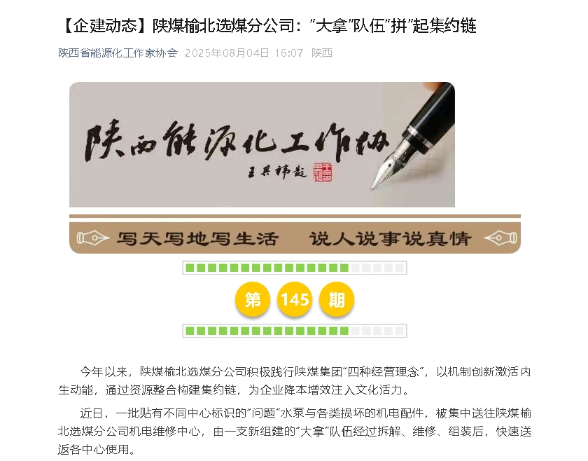 近日,陜西省能源化學(xué)地質(zhì)工會公布2025年“工人先鋒號”名單,選煤分公司曹家灘選煤中心主洗二班上榜。近年來,該班組先后獲得陜煤集團(tuán)班組大賽暨勞動(dòng)者講述二等獎(jiǎng)、2025年榆林市班組建設(shè)大賽二等獎(jiǎng)等榮譽(yù)。創(chuàng)新推行“兩提一優(yōu)”工作法,圍繞技能培育提升,構(gòu)建“理論學(xué)習(xí)+實(shí)操訓(xùn)...
