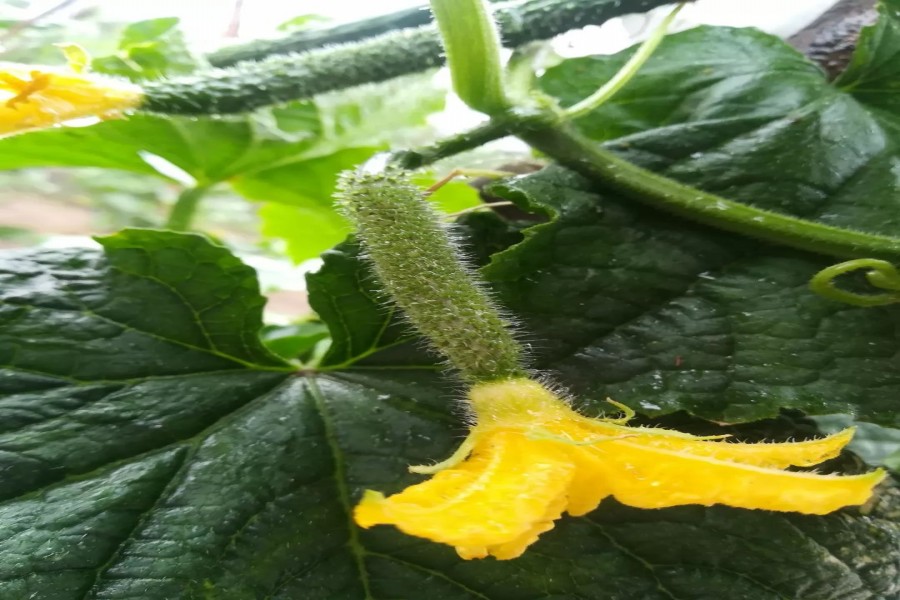 筆者走進三號園區,遠遠地、映入眼簾的就是各種各樣的綠色,綠葉中有著大大小小黃色的花。走近一點看,兩旁的蔬菜像是在夾道歡迎:又尖又小的辣椒、又圓又胖的茄子、頂花兒帶刺的黃瓜、小巧玲瓏的圣女果、開著紫花兒的扁豆……這么多的植物在小小的院子里密密麻麻又錯落有致地生長著,熱鬧極了!