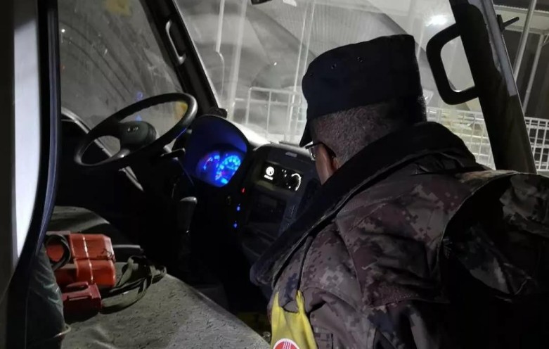 隨后,司機師傅只好把車開了回去,等到檢修好,才駕駛入井。