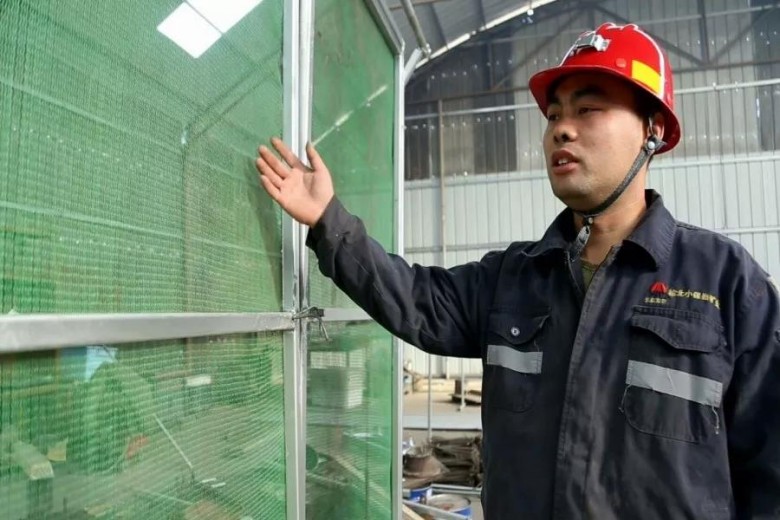 “小發明”解決“大難題”。為了彌補綜采工作面回風巷定點噴霧降塵裝置的局限性,通風維護區技術人員通過反復研究實驗,研制成功了可移動式捕塵網。在綜采工作面回順超前50-100m范圍,安裝一組捕塵網,捕塵網的組成根據巷道斷面大小加工成與斷面大小合適的骨架,骨架采用兩扇門,骨架上采用網片焊接,網片上敷設2mm的方格用于捕塵,骨架地腳安裝可推移滑輪,捕塵網上風側3-5m安裝自動噴霧,隨著工作面回采可推動骨架上的滑輪進行遷移,大大改善了作業環境,保障了員工的健康。