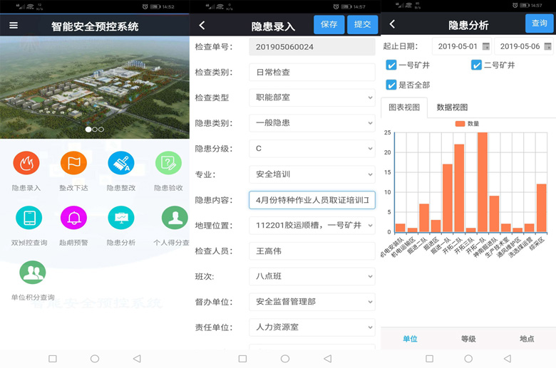 安全智慧化是將傳感器物聯網、移動互聯網、大數據分析等技術融為一體,在人工操作下,實現安全的穩固牢靠,長治久安。該公司不斷強化“三基”建設,將安全責任層層分解,形成分層管理、逐級負責的安全智能管控體系。通過升級后的安全智能管理模塊,消除了各種系統錯誤,完善了隱患查詢分類、分級別、分部門進行定制化查詢、自動匯總分析的功能。同時,增加了自動提醒和提級督辦功能,隨時了解和安排隱患整改工作。