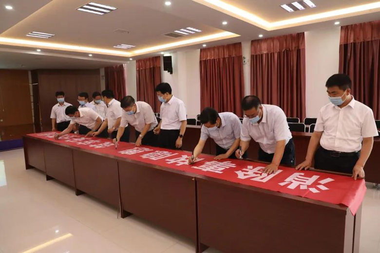全體與會人員集中觀看了全國2020年安全生產(chǎn)月宣傳片《堅守的力量》并莊嚴(yán)宣誓,在“消除事故隱患 筑牢安全防線”橫幅上鄭重簽名。