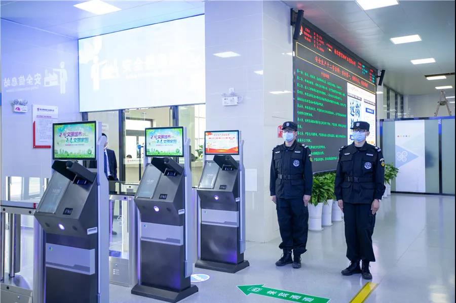 在井口智能安檢大廳,準(zhǔn)備入井的員工正排著隊(duì)在智能綜合安檢一體機(jī)前刷虹膜入井,通過(guò)之時(shí),還要在智能綜合安檢一體機(jī)上進(jìn)行安全知識(shí)答題。