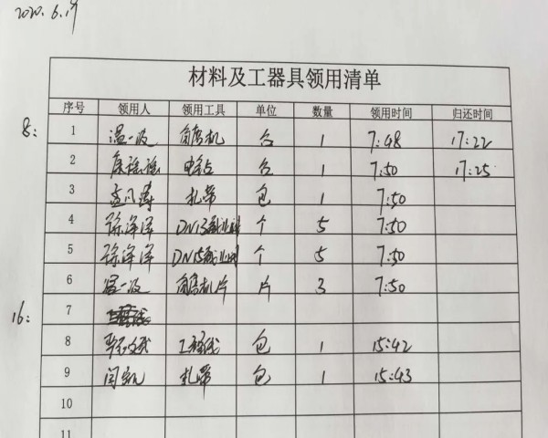 同時(shí),該隊(duì)還積極回收井下能夠再利用的材料,通過(guò)材料員日常修復(fù),使材料實(shí)現(xiàn)二次利用。要求各施工班長(zhǎng)積極配合材料員對(duì)回收材料進(jìn)行修復(fù),通過(guò)加強(qiáng)材料管理,形成清晰的材料及工器具領(lǐng)用清單和歸還清單,全面降低材料消耗成本。