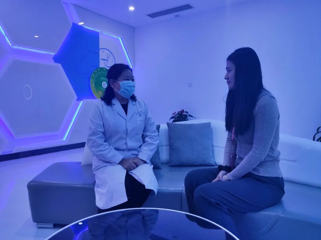 休閑問診區大夫與員工面對面交流