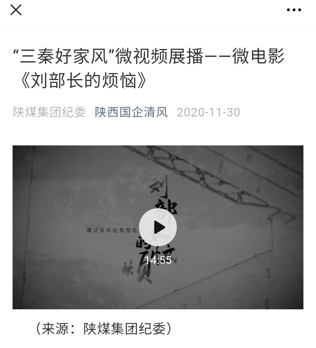 近日,陜西省紀委監委“三秦好家風”系列微視頻評選結果即將揭曉,公司廉潔微電影—《劉部長的煩惱》入選并先后在學習強國、省國資委國企清風等多家知名媒體展播,作品展播后,得到了省國資委、集團公司及各兄弟單位的高度認可。