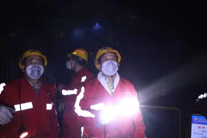 在曹家灘公司122107快掘工作面,石增武現場了解了工作面安全生產運行狀況,并針對快掘設備的進一步升級改造、智能化建設、人員配置等方面工作與現場工作人員進行深入交流。石增武強調,一是在安全生產過程中要保證工作質量,要在原有快掘設備技術的基礎上,不斷鉆研、探索、創新,在實踐中總結經驗,再將經驗反作用于實踐,形成曹家灘高質量快掘方案。二是要不斷加強掘進工作面的智能化建設,用智能化減人增效,實現井下安全生產“少人化、無人化”。三是要加強快掘工作面優秀人才隊伍的建設,在日常管理中加強員工思想教育,激勵員工,以“小課堂”、技能大賽、技能培訓等為載體,為員工搭建學習平臺,培養一批高素質技能型人才隊伍。