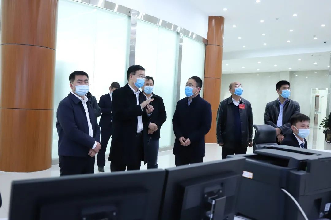 在該公司調度指揮中心,肖緒才查看了該中心智能監控系統的運行情況,他強調,調度指揮中心是智慧園區、智能礦井的“大腦”,要對園區、礦井重點工作區域實現全方位實時監控,及時了解各個系統運作情況,提高調度指揮效率。
