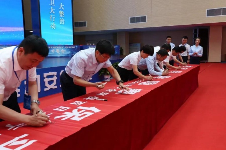 隨后,公司領(lǐng)導(dǎo)班子成員、所屬各單位領(lǐng)導(dǎo)班子、安全管理人員、員工代表舉起右拳,進(jìn)行了集體宣誓,并在安全橫幅上鄭重簽字。