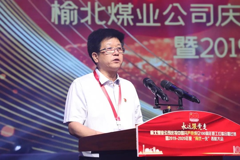 公司黨委書記、董事長、總經理石增武致辭并為“兩優一先”獲得者代表頒獎。他對近兩年公司高質量發展中做出突出貢獻的先進基層黨組織和優秀黨員、優秀黨務工作者表示祝賀。他表示,百年風雨鍛造了偉大的中國共產黨,黨用百年的“艱苦奮斗 春華秋實”帶領中華民族走向復興;十年創業磨礪出一個一流的榆北煤業,榆北人用十年的“不忘初心 砥礪奮進”逐夢榆北煤業奔向卓越。十年來,在黨的堅強領導下,公司項目建設突飛猛進,安全穩定勢頭良好,智慧礦山引領行業,重大項目領先世界等等,一項項記錄被刷新,一個個成績被創造,公司黨員干部職工用滿腔熱忱書寫了榆北煤業高質量發展新篇章。