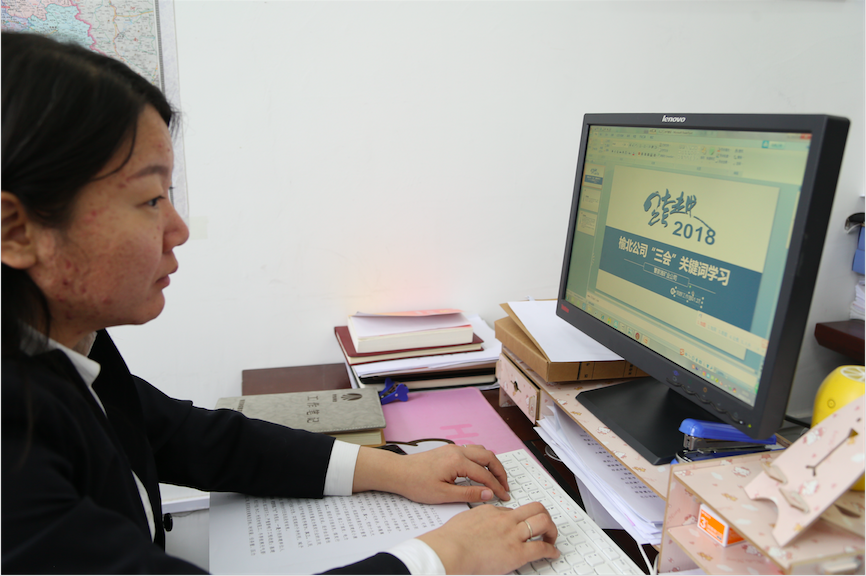 “今天一起學習榆北煤業公司行政工作報告的關鍵詞。2018年總體工作部署:即圍繞一條主線,實現兩項改革,建立兩個機制,抓好六項重點工作,實現十大目標……”該公司黨群部干事劉盼每天工作的第一件事就是精心制作PPT,精練 “關鍵詞”,雖然只有短短幾句話,但準備工作一點也不馬虎?!耙蝗罩嬙谟诔浚刻煸缟隙寄軐W習到幾個工作會‘關鍵詞’,這種方式更方便大家學記,也更有利于掌握工作方向,做好工作計劃。”參加晨會的員工紛紛給予點贊。